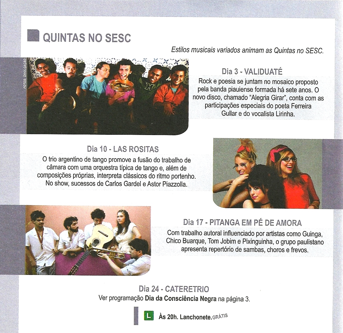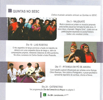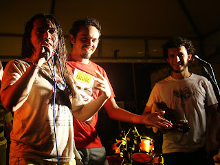Quaresma – Para a composição de todo o trabalho da banda nós somamos as experiências de cada músico, as referências que cada um pode trazer para a construção de uma nova síntese. É claro que isso nem sempre é possível em todas as músicas, mesmo porque algumas nascem dentro de um estilo que demanda certo respeito à manutenção de seus elementos, e mesmo porque não há como pôr tudo num único lugar sempre. Assim há as canções que são mais “bregas”, outras mais samba, outras mais reggae, e outras estritamente mais rock. Quanto à poética, ou ao texto propriamente dito, os caminhos percorridos são determinados pelas temáticas que deram origem a cada canção. Se a música é de abandono, e tem um tom mais sério, não é adequado o uso de expressões que denotem humor. É uma questão de decoro. Se num mesmo texto, ou numa mesma letra, há a convivência de momentos mais eruditos (ou mais poéticos) e outros mais populares (e mais prosaicos), em geral um é pra “tirar onda” do outro. Isso nasce das leituras do mundo e das literaturas que nos acompanham desde os tempos de colégio até os momentos de descanso numa rede de tucum, no terraço, sob a sombra de um pé de jambo, numa tarde quente, logo depois do almoço.