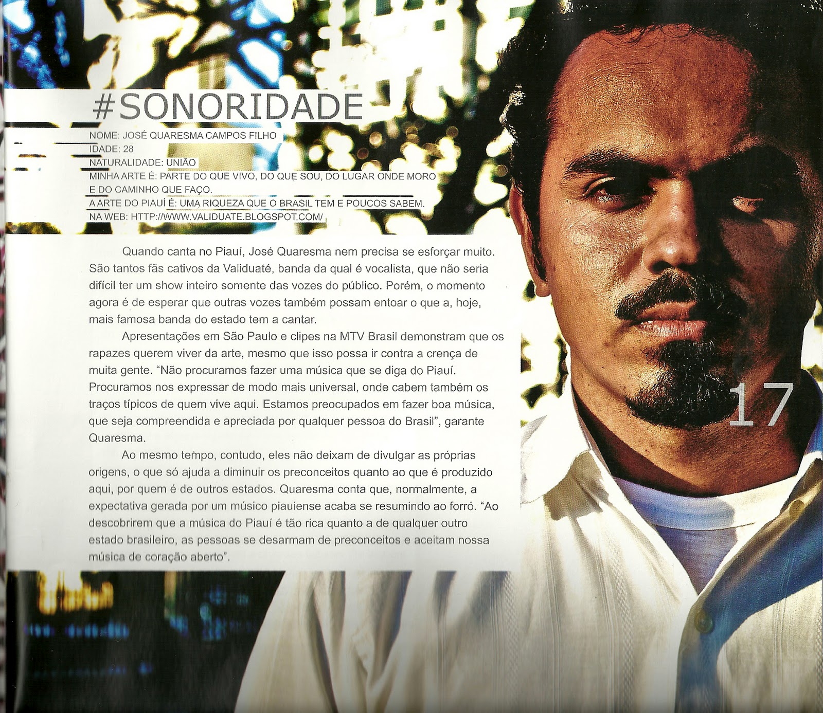 Quaresma – 28 anos, natural de União, músico, artista plástico e publicitário.