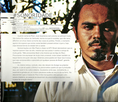Thiago E – Não definiria. Pra que definir? Por que se encerrar em um rótulo? Eu posso marcar um “x” na categoria “outros”? A arte tem uma importância imensurável na minha vida. Arte é prazer. Arte não é definida. Temos várias versões. O prazer não é definido. A vida não é definida. O problema é que no sistema capitalista, de consumo, tudo que existe tem que servir para alguma coisa. Por que ele pode ser comprado! Então ele deve ir pra uma prateleira e ser categorizado. E, quando aparece algo que não se define, o sistema enlouquece! [risos] Porque não é compatível com a vida. O estilo da banda é o que queremos naquele período. A gente faz uma música pop, toca samba com rock, tem boi, maracatu... Essa é minha versão. Mas pode vir uma pessoa e dizer que temos um trabalho perfeitamente categorizável e tudo. Beleza, é outra versão. E as conversas vão acontecendo. Contudo, a gente não se IDENTIFIXA.